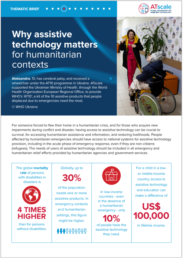 A series of thematic briefs explain the cross-cutting nature of assistive technology and why assistive technology matters for various sectors.