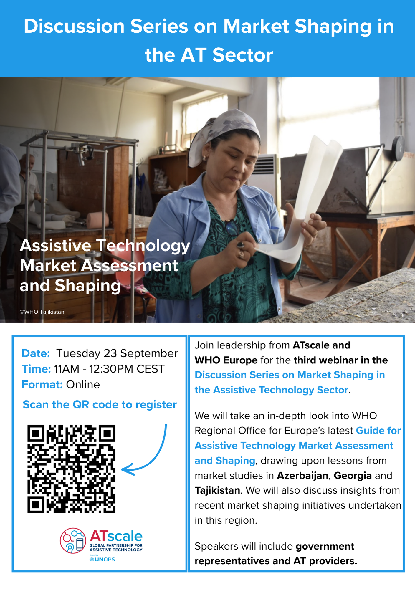 The webinar will present the new Guide for Assistive Technology Market Assessment and Shaping, with insights from market studies in Tajikistan and Georgia, and explore how these approaches can inform action in other LMICs.